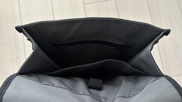 大きさは13インチのノートPCが入るくらい、厚みはさほどありませんが、あまり多くの荷物を入れるわけではないので、問題ありません。